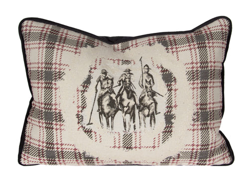 Country Style City Chic Giddy Up Sophisticated Riders with a Flat Piped Edge on a 14"x20" Pillow with Feather Insert with Zipper for easy removal for Laundering Proudly Manufactured in Canada