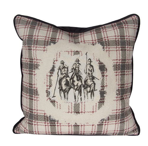 Country Style City Chic Giddy Up Sophisticated Riders with a Flat Piped Edge on a 20"x20" Pillow with Feather Insert with Zipper for easy removal for Laundering Proudly Manufactured in Canada