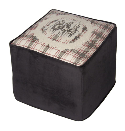 Country Style City Chic Giddy Up Sophisticated Riders with a Flat Piped Edge on a 16"x16"x16" Square Ottoman with Rigid Foam Insert with Zipper for easy removal for Laundering ... Proudly Manufactured in Canada